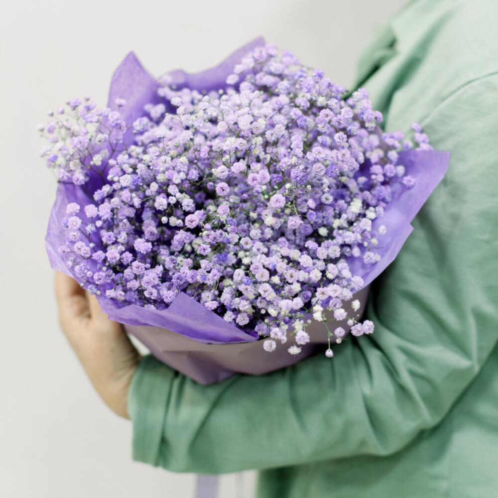 Гипсофила фиолетовая – 3 шт.Тишью – 1 шт.Пленка – 1 шт.Лента – 1 шт.