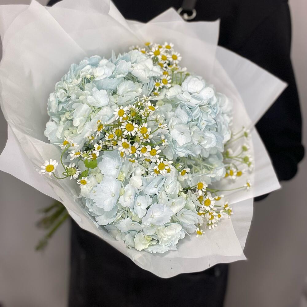 Букет из ромашек и нежных гортензий микс