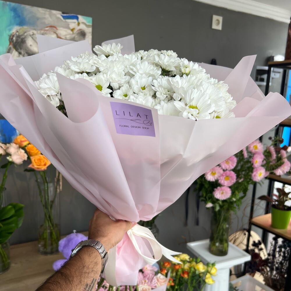 15 белых кустовых хризантем