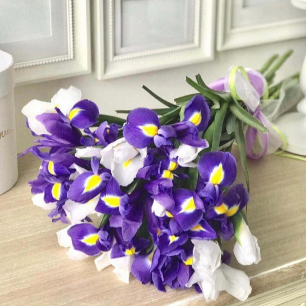 ирисы белые и синие – 29 шт.Дизайнерская упаковка – 1 шт.