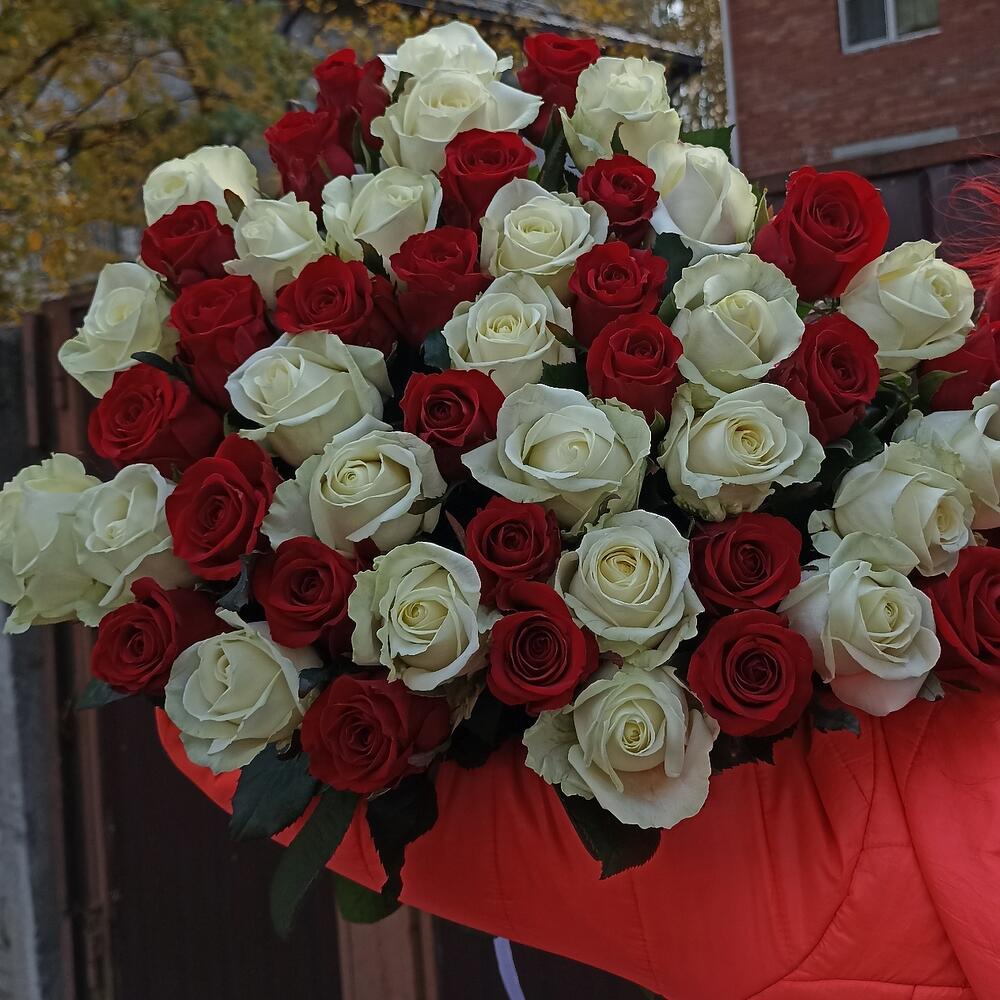 Букет 51шт красно-белый микс