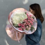 Альстромерии, Гортензии, Кустовые розы, Лизиантусы, Розы, Хризантемы