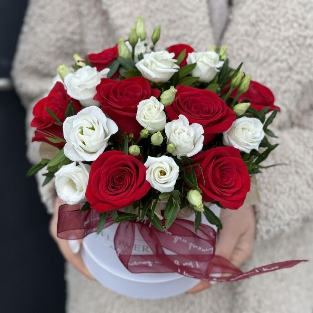 Альстромерии, Гвоздики, Кустовые розы, Лизиантусы, Розы, Хризантемы