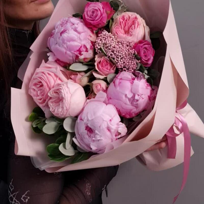 Гвоздики, Кустовые розы, Лизиантусы, Пионовидные розы, Розы