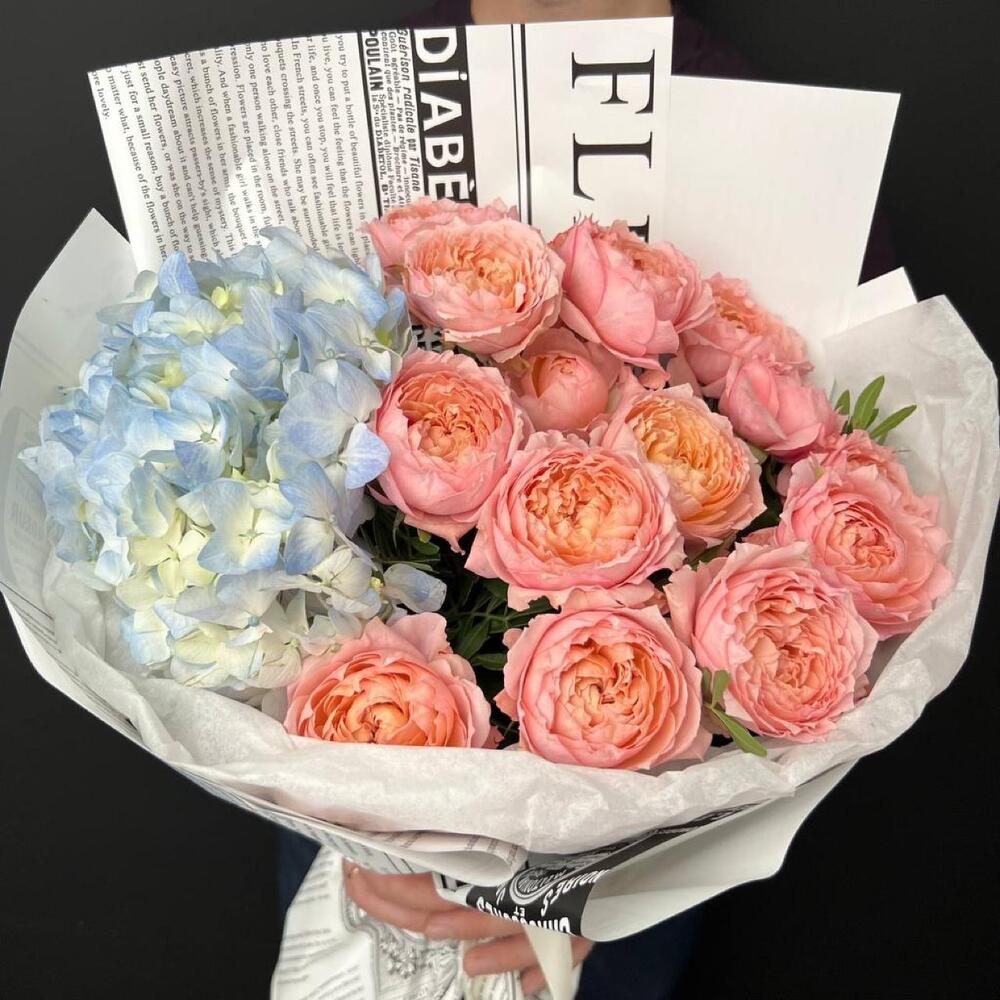 Гвоздики, Кустовые розы, Лизиантусы, Пионовидные розы, Розы